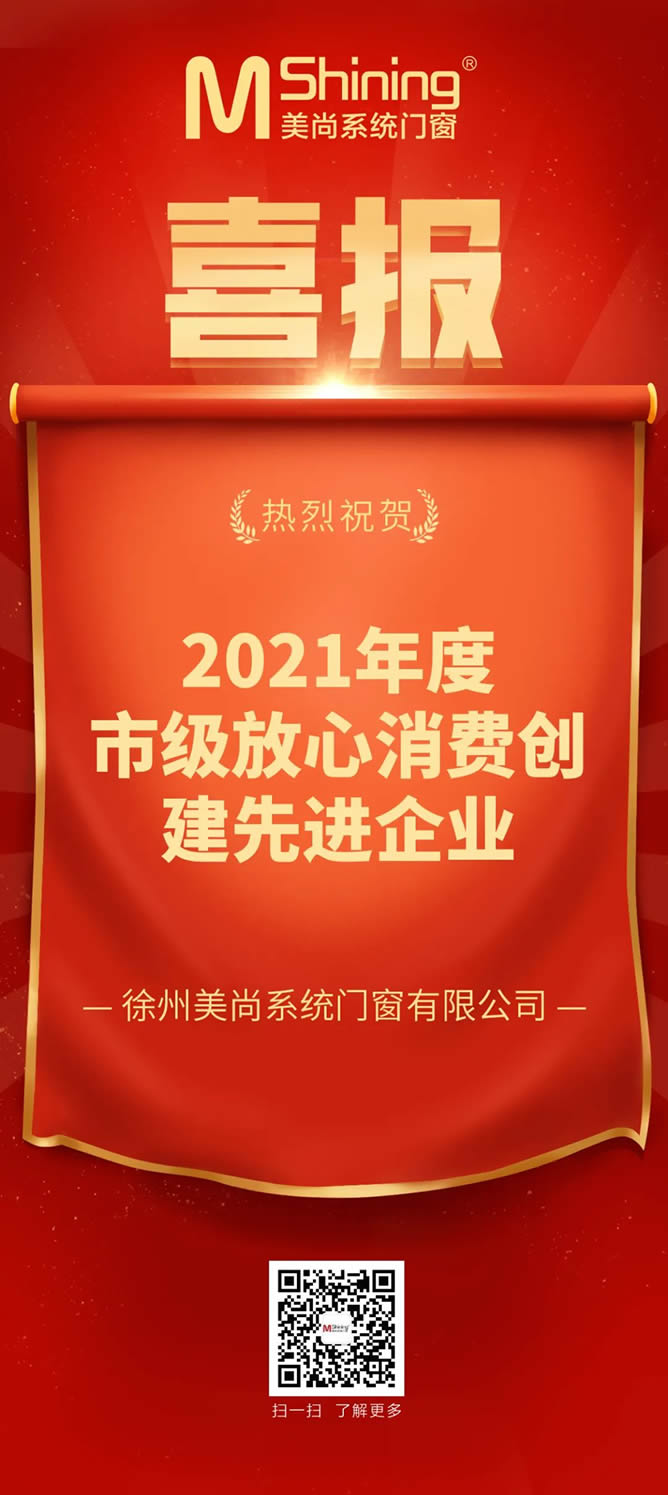 克日,徐州市安心花费建立勾当办公室宣布文件,对2021年度全市安心花费建立诚信品牌企业、树模街区和进步前辈树模企业、行业、地区停止复核功效传递。手机av在线_中国黄色大片_在线无码视频:门窗十大品牌徐(xu)州美尚体系门窗无限公司(si)无限公司(si)荣获(huo)“2021年度市级(ji)安心花费建立进步前辈(bei)企业”。 🧸;